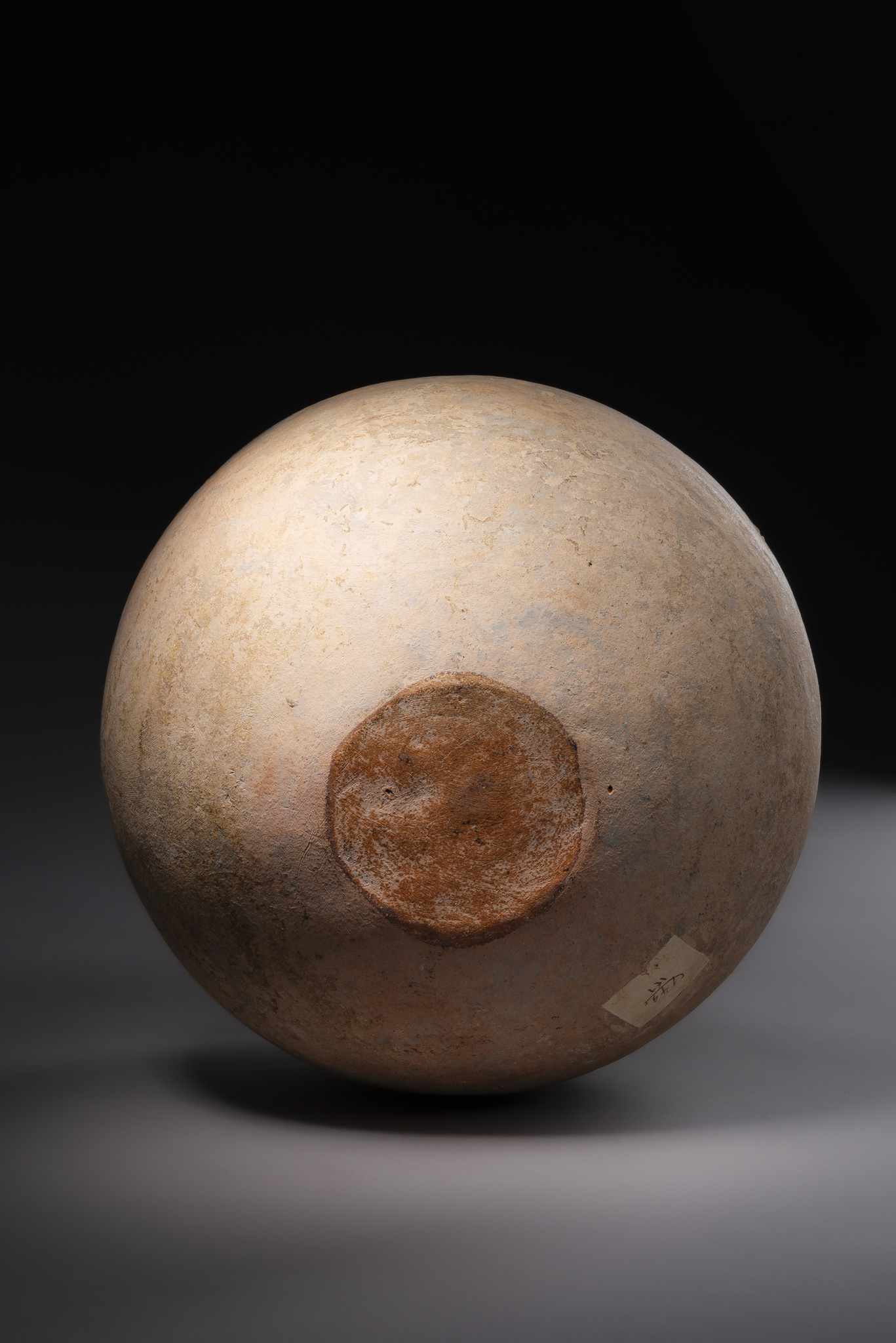 beiger Ton / Keramik, rotbraune Bemalung, altes Sammlungsetikett “149”, intakter Zustand