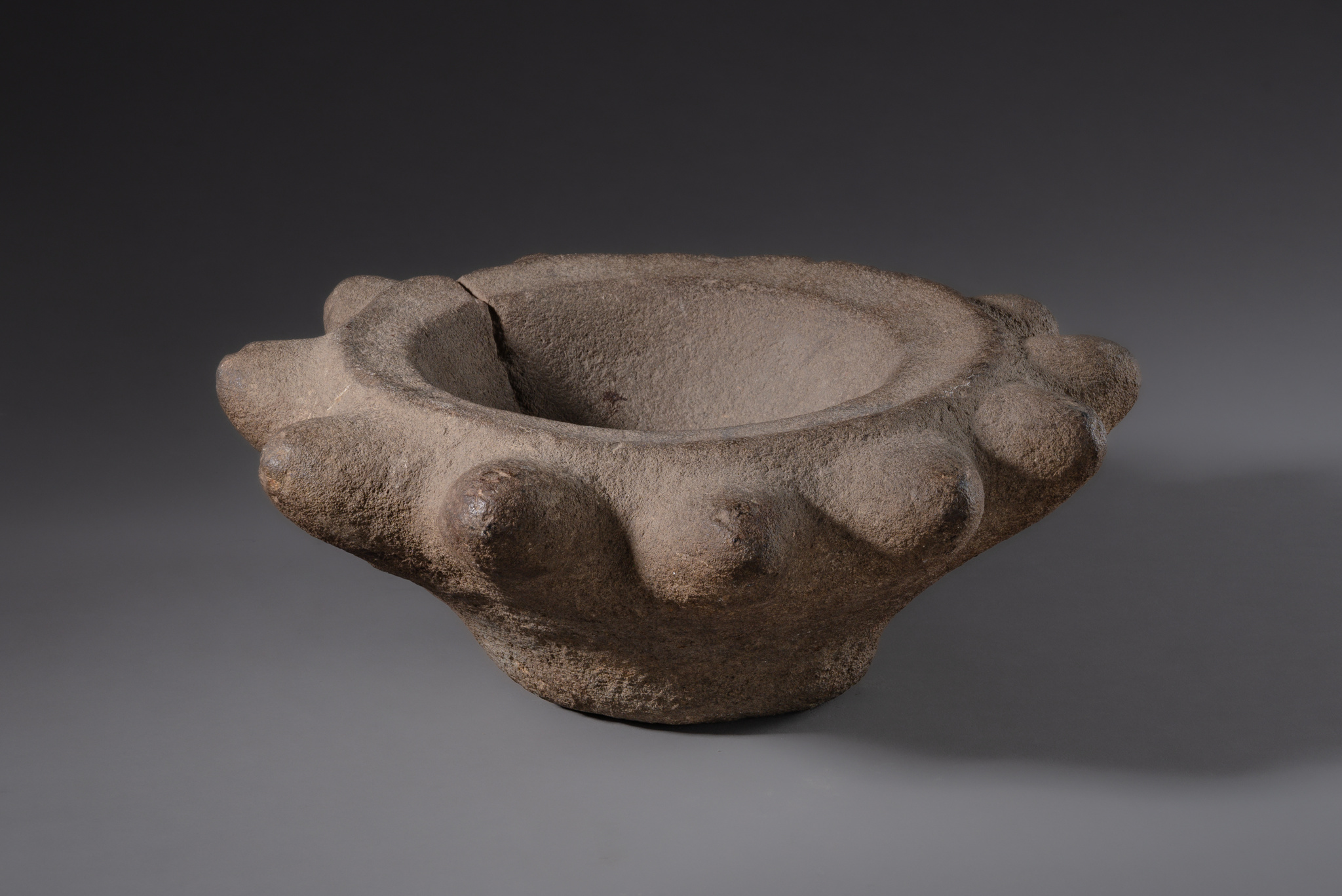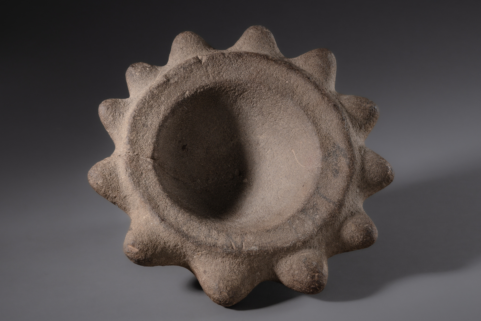 Die auffällige Größe der Ausbuchtungen gibt einen Hinweis darauf, dass dieser Mörser vermutlich aus dem mittleren Wahgi-Tal stammt, entweder aus dem östlichen Teil der Western Highlands oder aus Simbu.