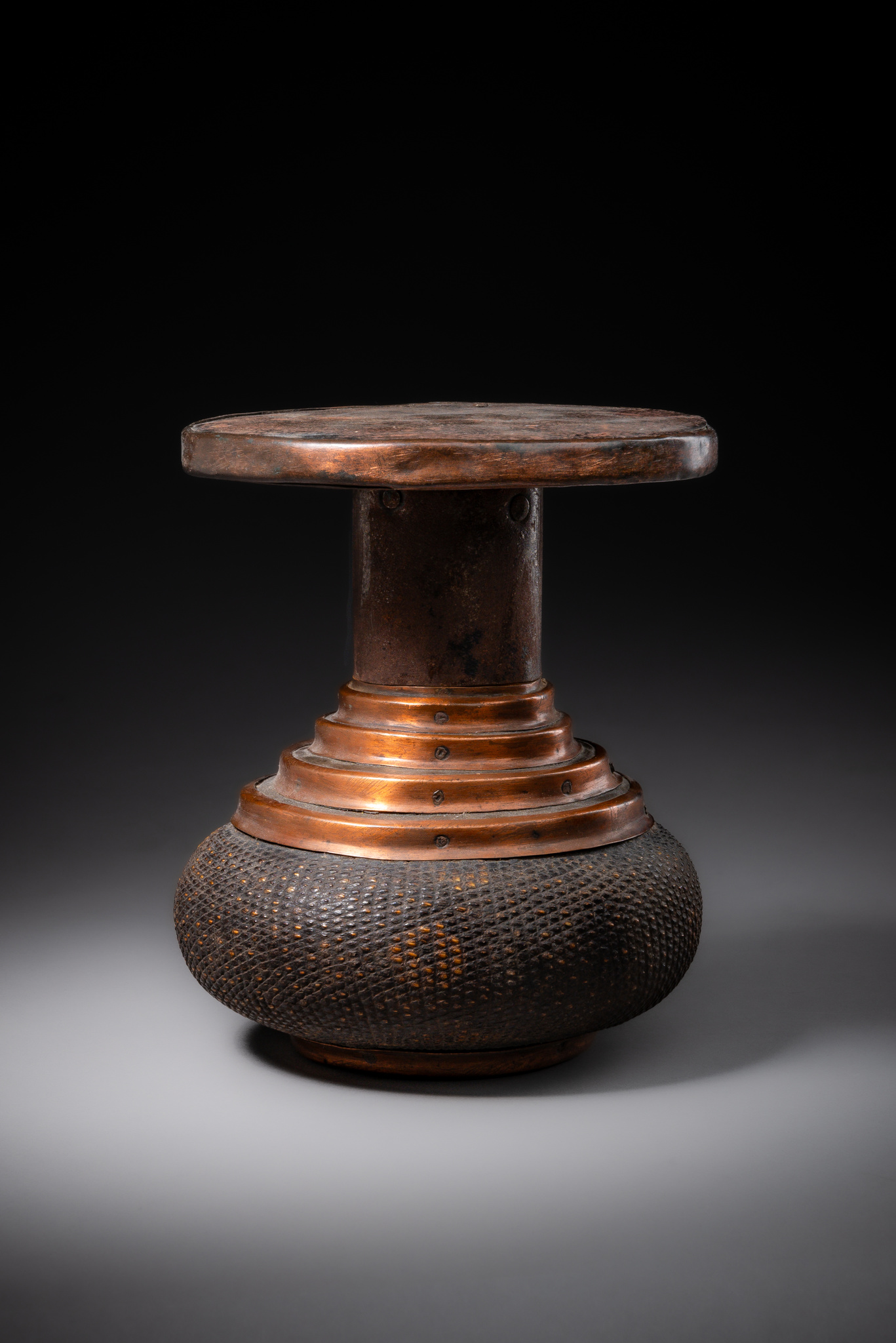 The use of reptile skin points to a clear context of war or power, as is also known from richly decorated sword sheaths and other ceremonial weapon objects of the Fang. Such materials are characteristic of personal prestige objects of high-ranking individuals and combine functional forms with symbolic meaning.
