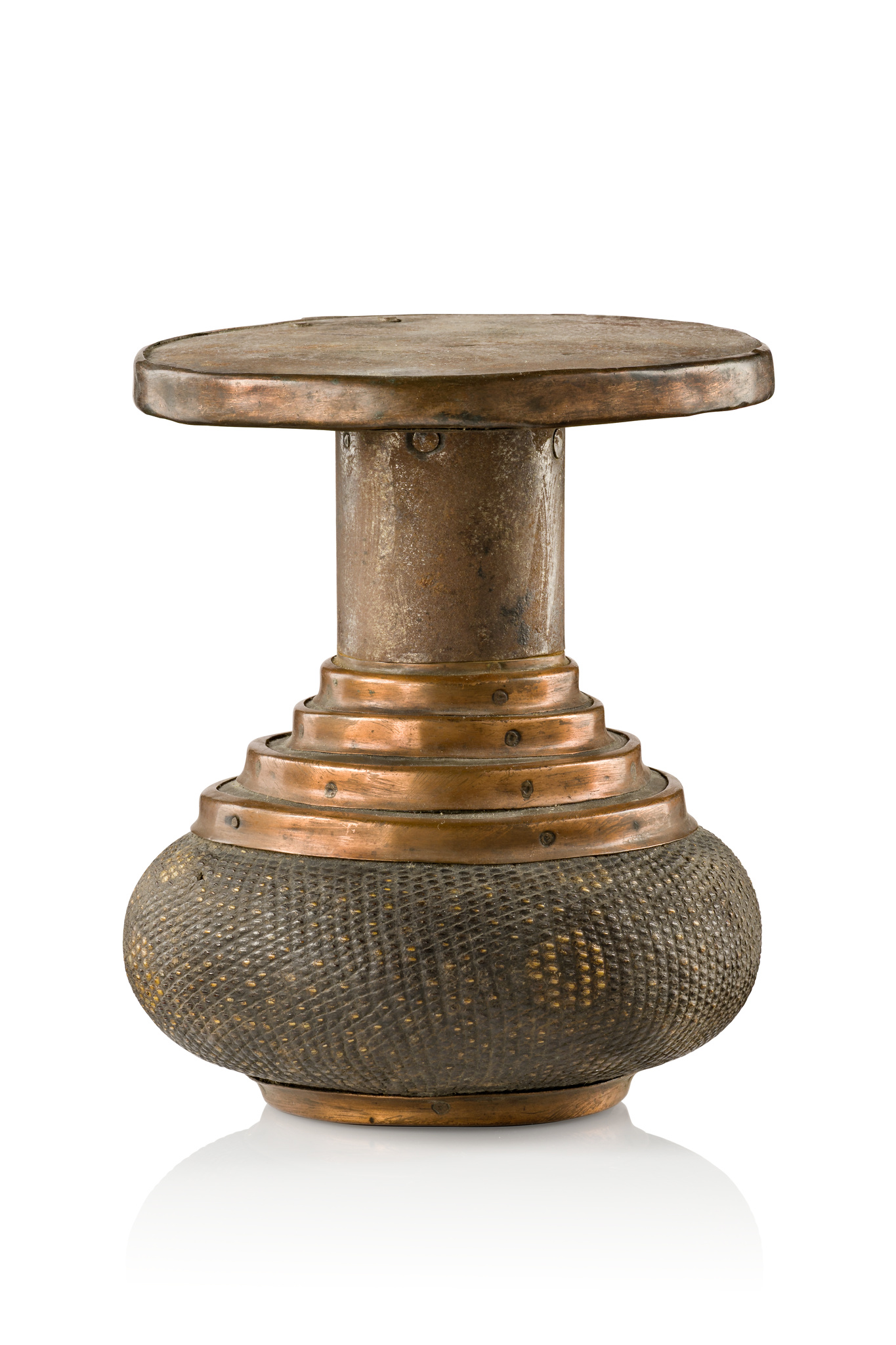 copper alloy (bronze, brass) sheets and tacks, lizard skin,