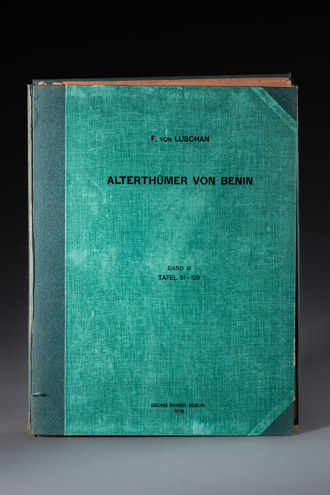 b) five items relating to the monograph “Die Altertümer von Benin” by Felix von Luschan, in a cloth-bound cardboard folder: