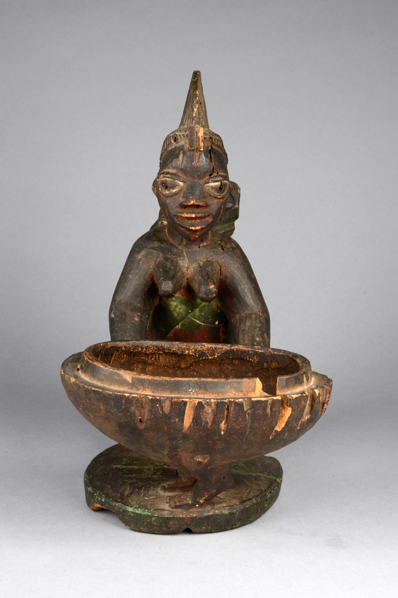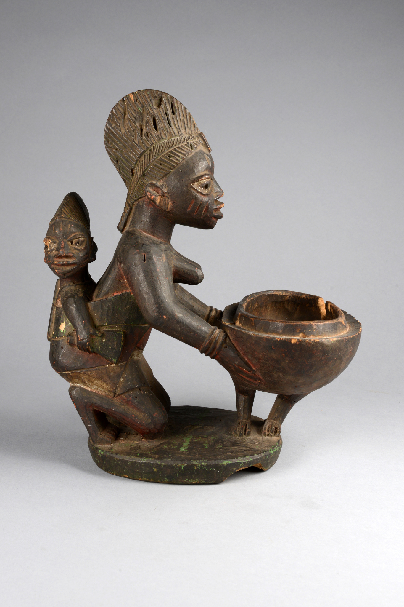 Kneeling female figure with bowl "olumeye" · Nigeria, Yoruba, Abeokuta, Oniyide Adugbologe · ID: 3043188