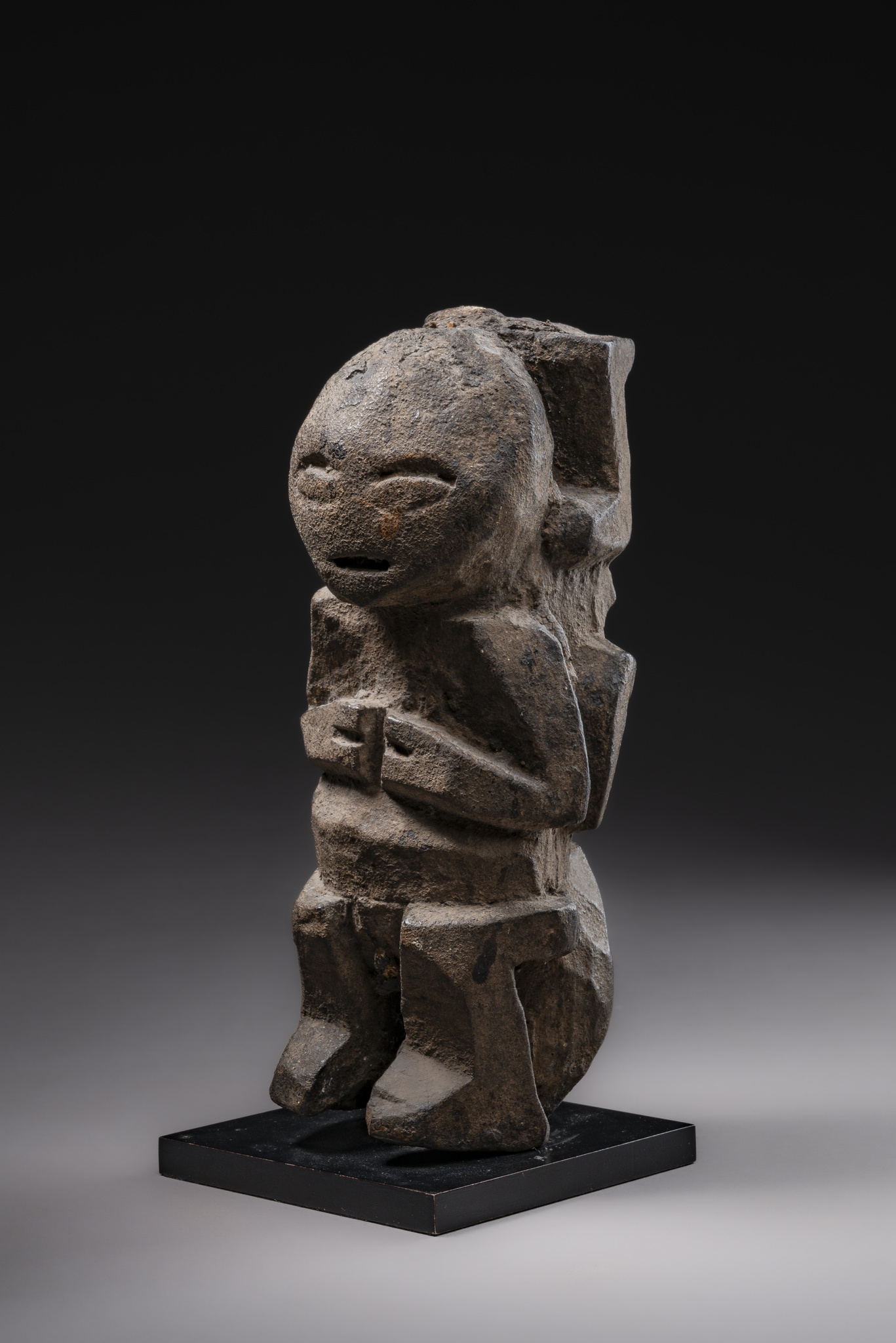 wood, encrusted brown patina, remains of pigments, base