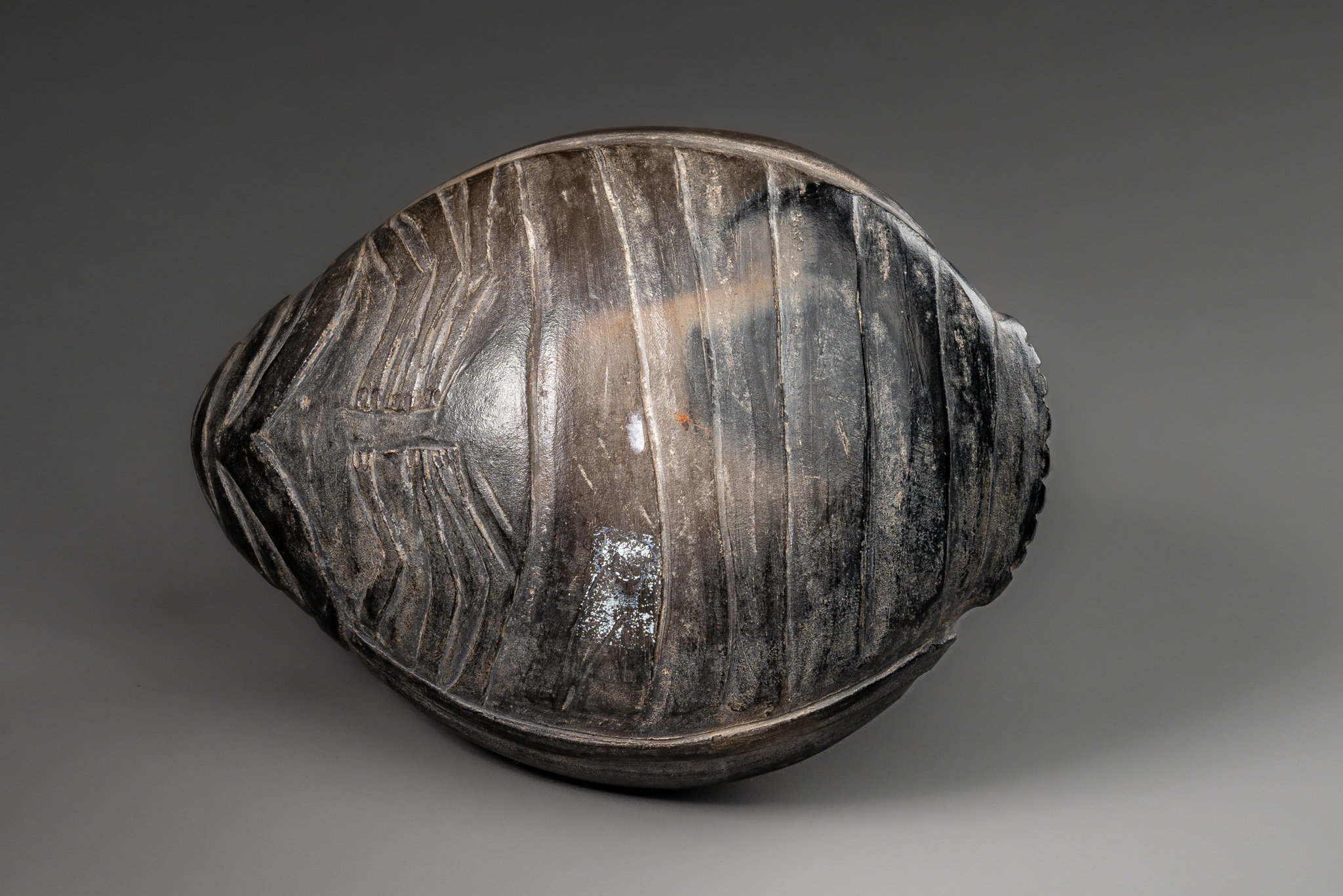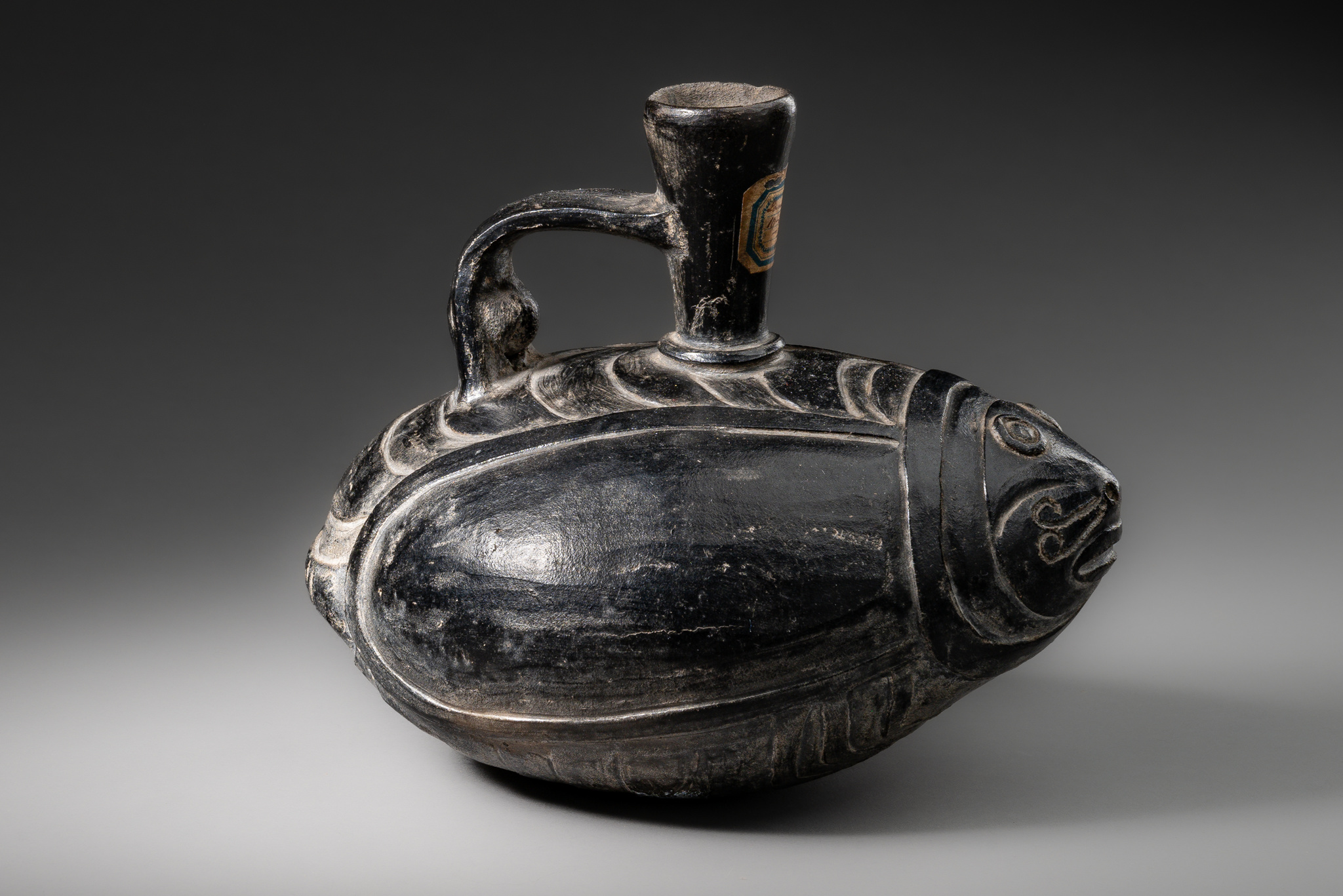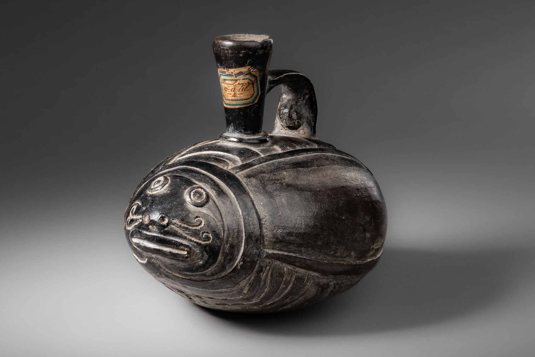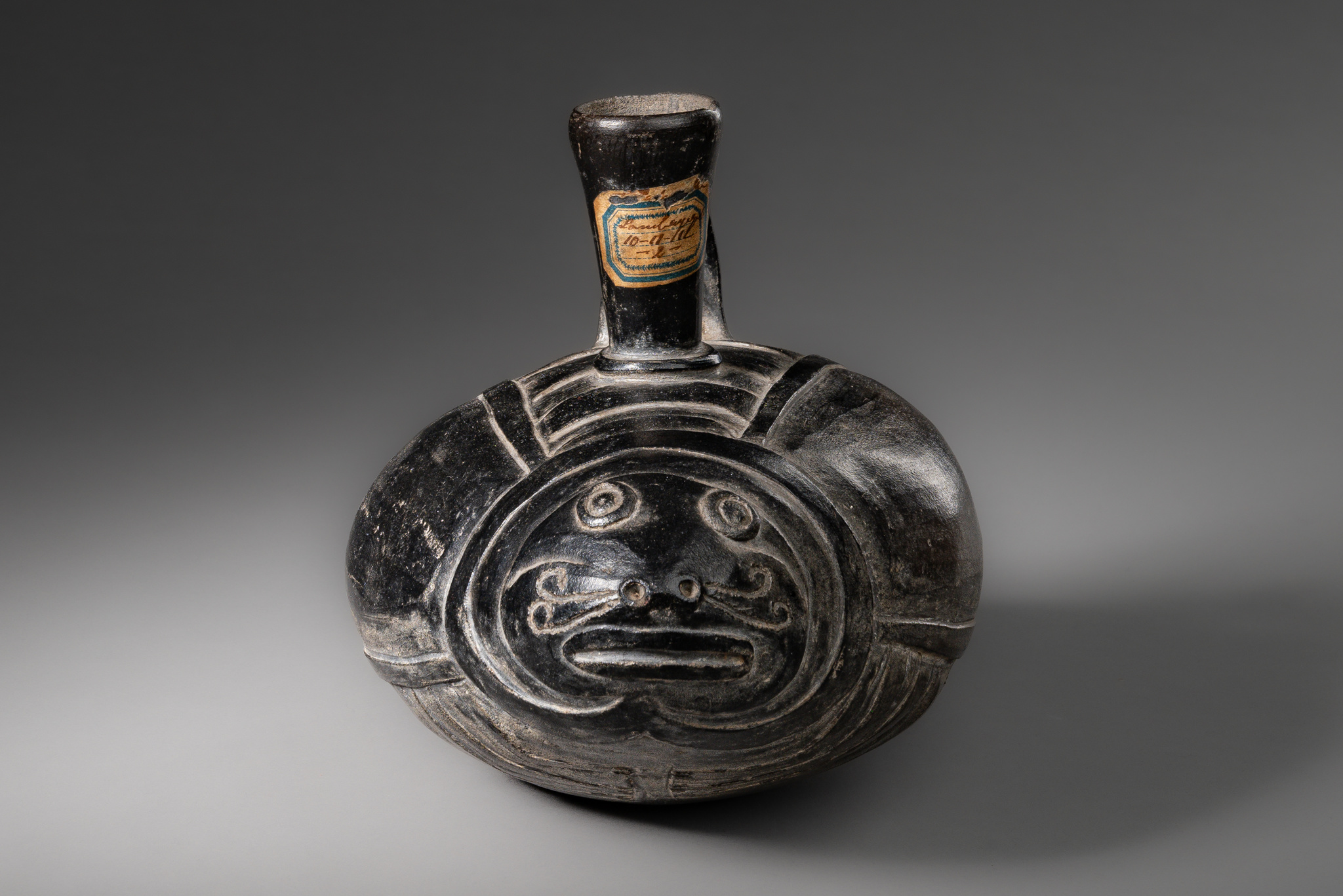clay with grey and blackish smoked engobe, old collection label