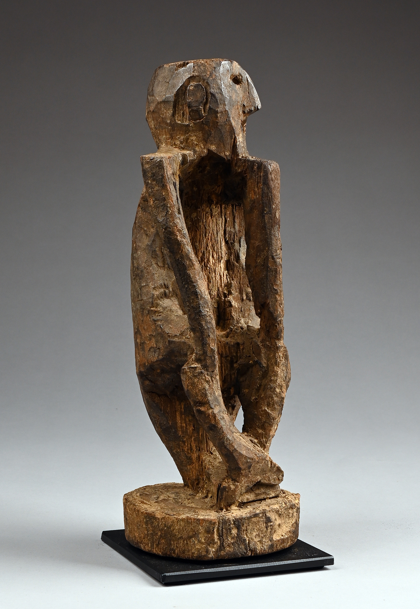 Very expressive figure with head turned sideways and crossed legs. Possibly the figure of a “bhut”, representing wandering ghosts and roaming spirits.