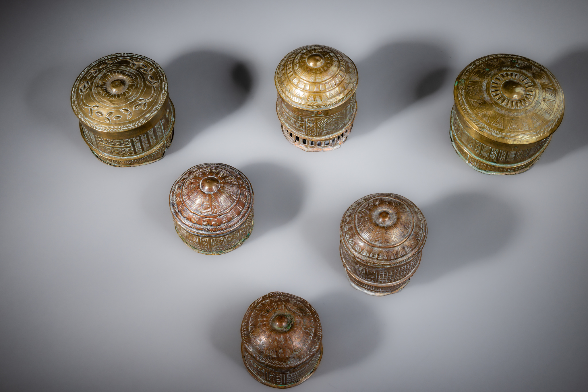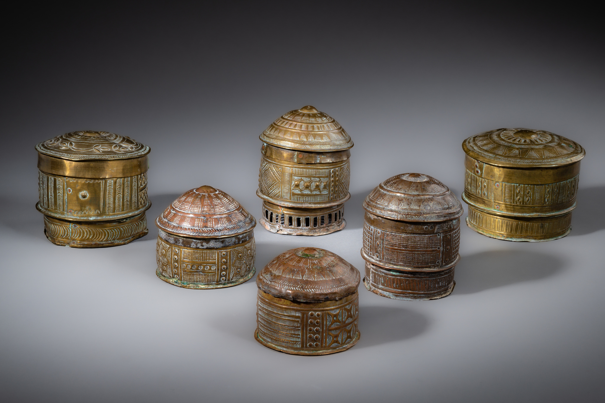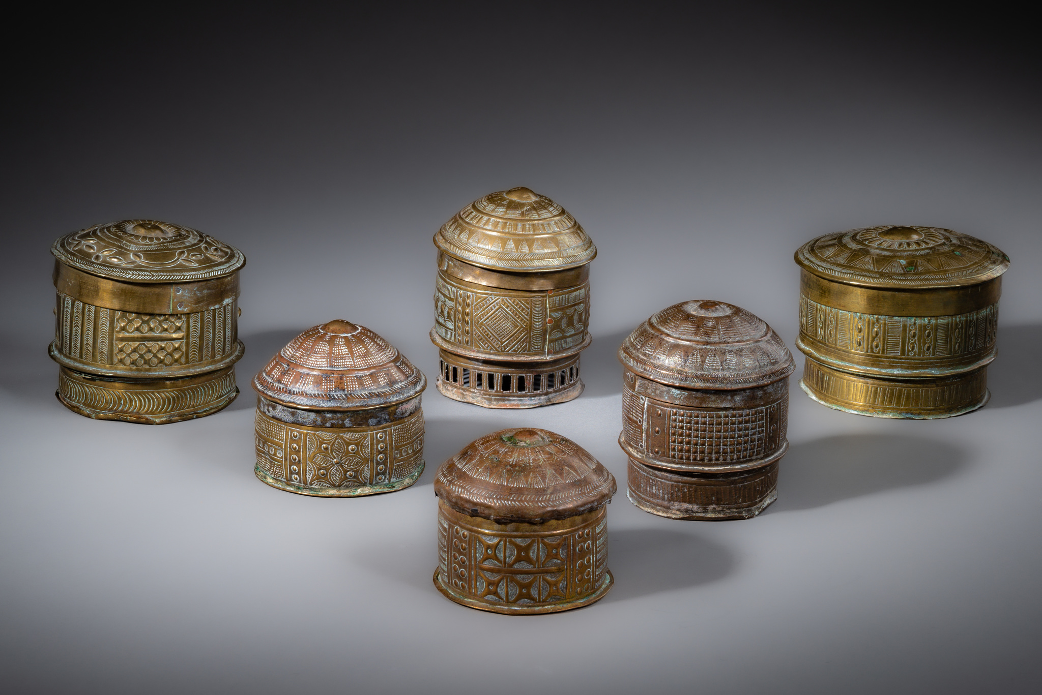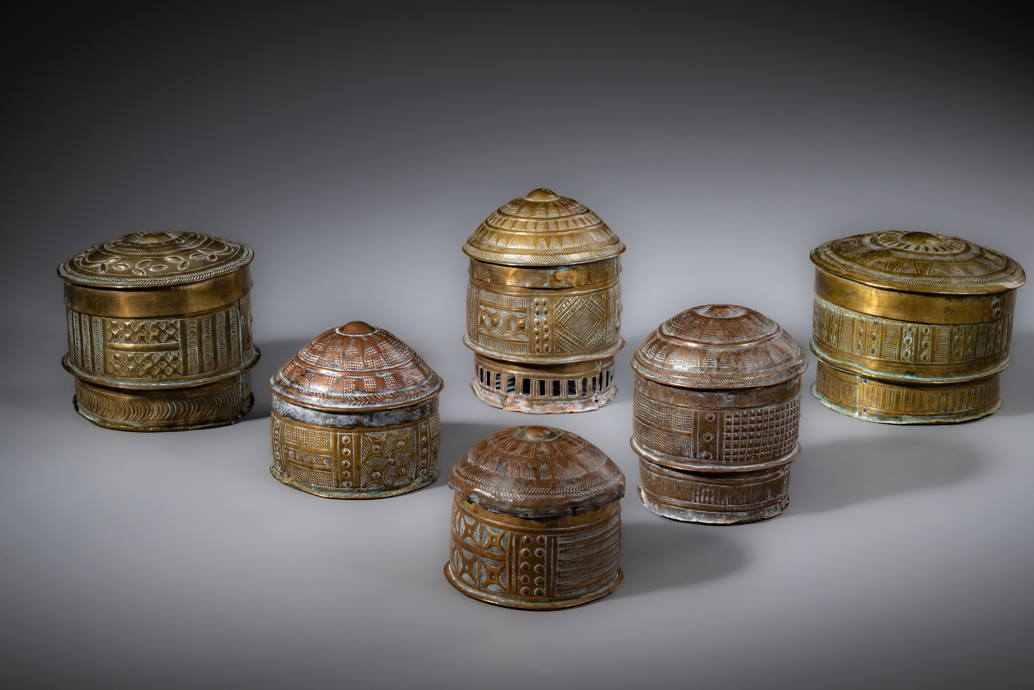Six lidded containers "mforowa" (sing. "forowa") · Ghana, Akan · ID: 3052824