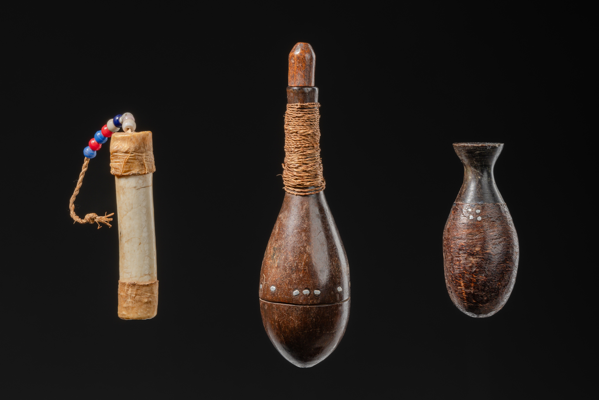 b) Kamba, wood, aluminium, thread, h: 14 cm