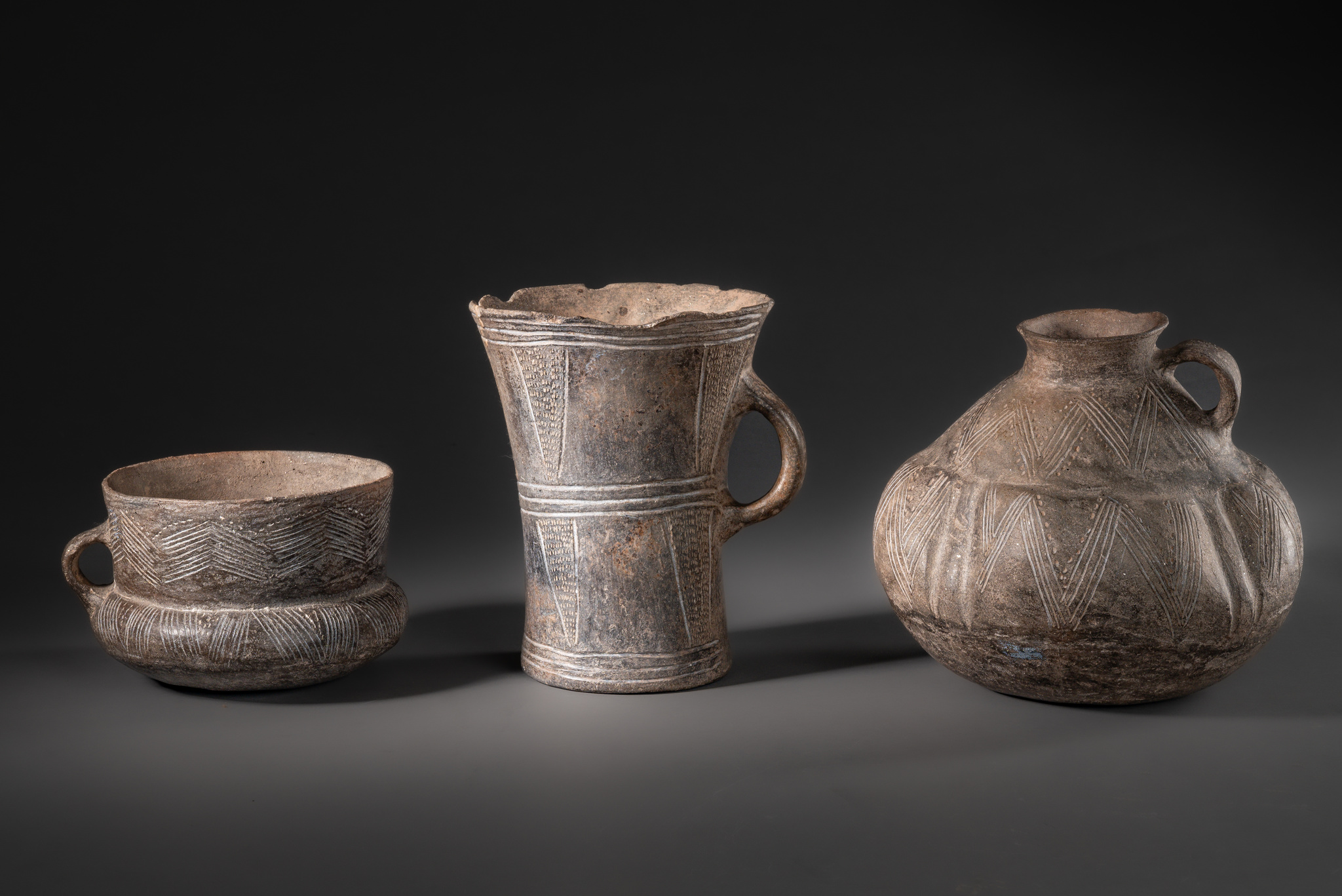 Three vessels, Early Ceramic Period, ca. 500 BC - 600 AD · Argentina, Catamarca Province, Condorhuasi · ID: 3053057