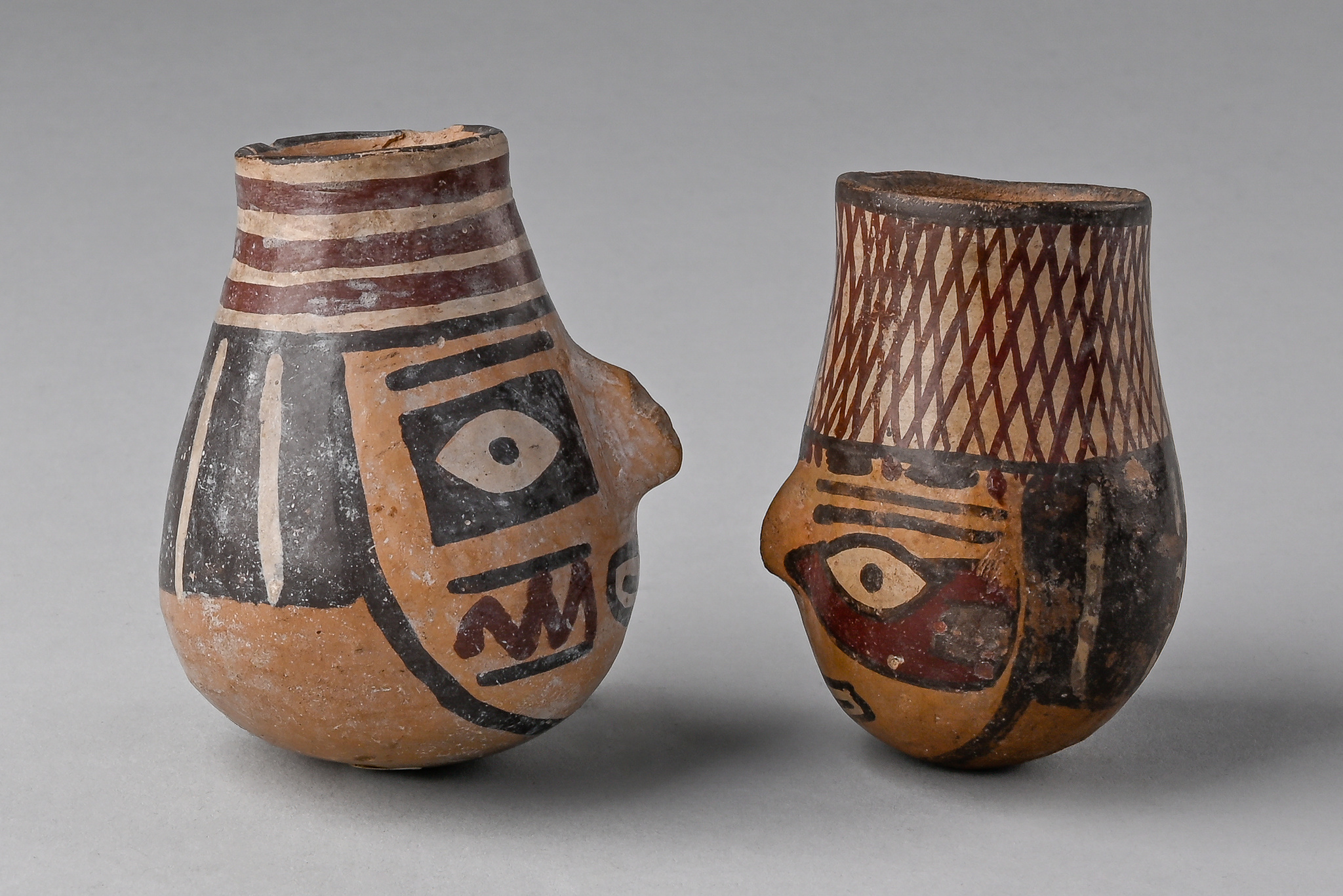 Deux gobelets-tête miniatures avec nez en relief, env. 200 à 400 apr. J.-C. · Pérou, Nazca · ID: 3050682