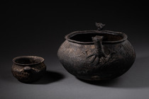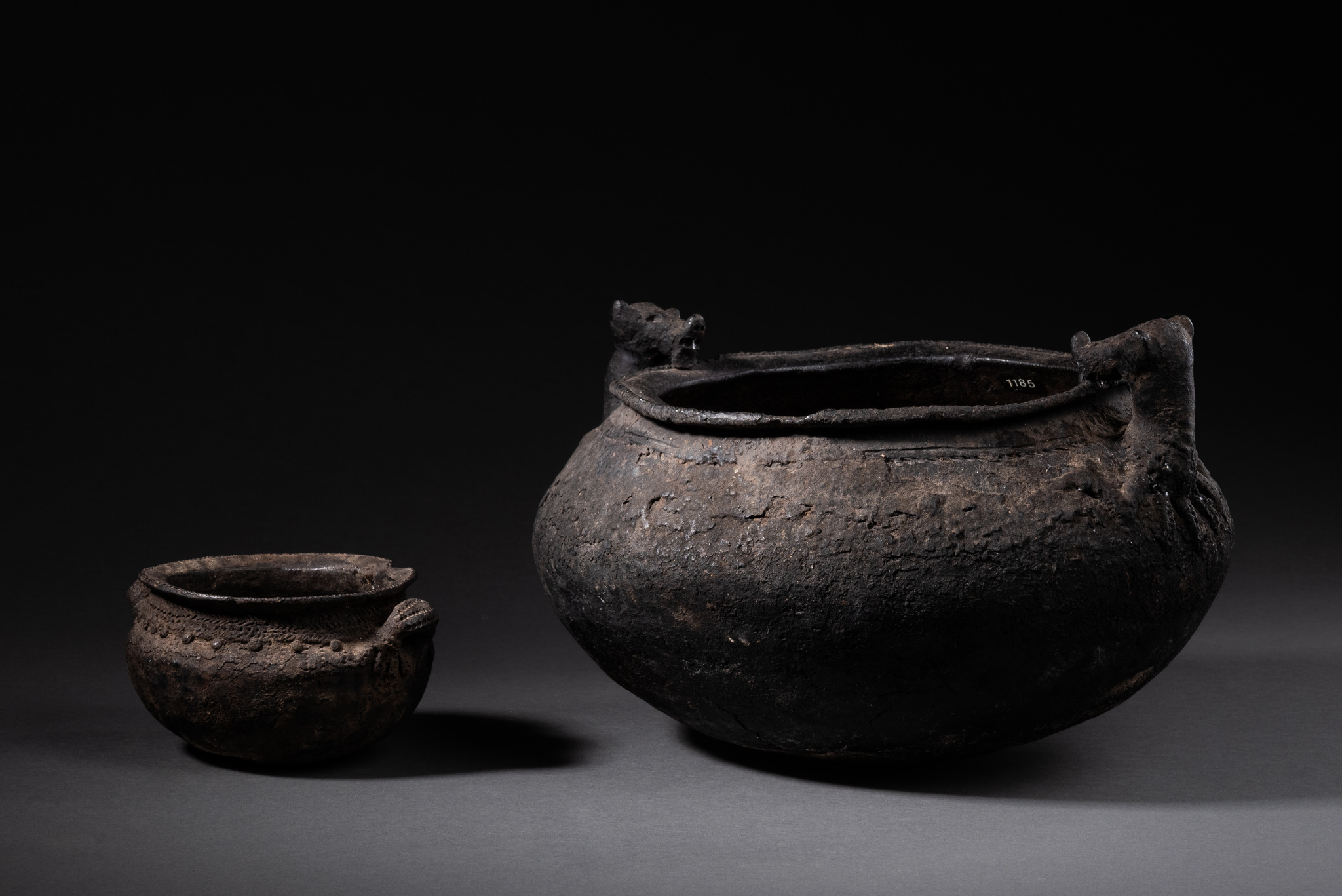 a) cooking pot “gur aniang” with zoomorphic handles (flying foxes), collection no. “1185”, h: 16.5 cm; d: 21.5 cm, rest.
