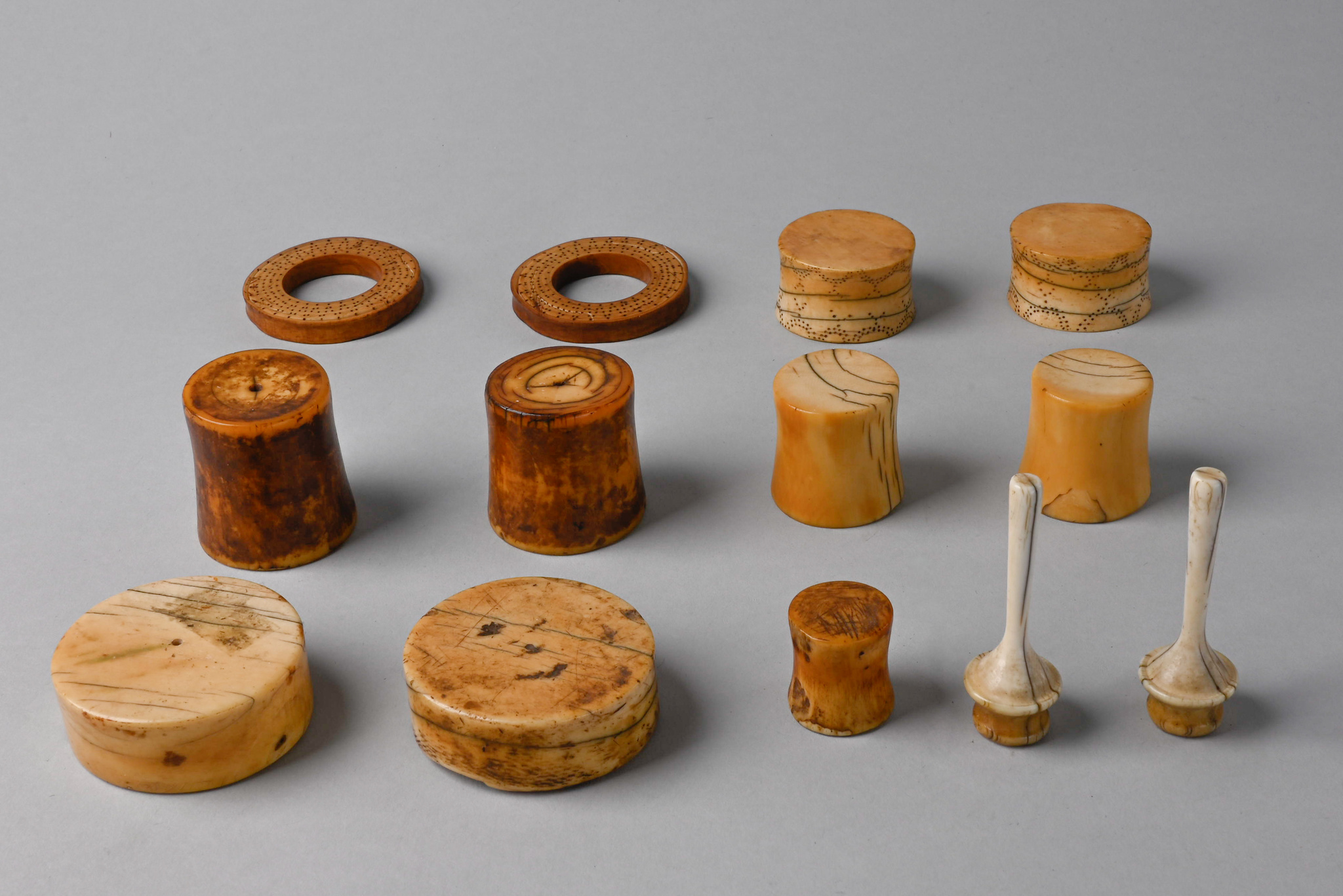 India, Naga, four pairs of ear plugs and a single piece, d: 2 cm - 5 cm; thickness: 2.3 cm - 3.8 cm