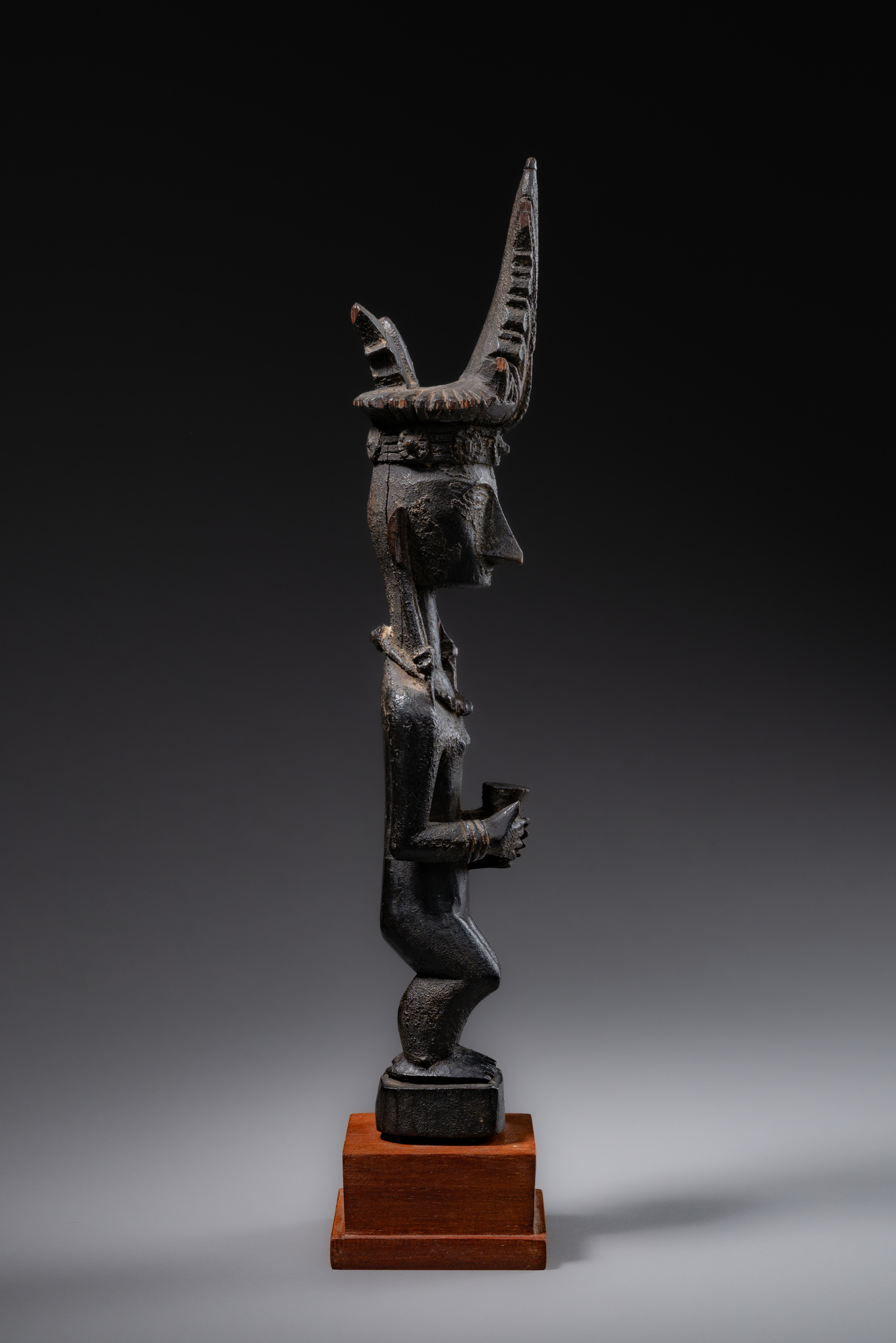 In the past, artists created a variety of ancestor images (“adu”), which housed the spirits of ancestors and allowed for communication between the human and supernatural worlds. While all households owned ancestral figures, more elaborate examples like this one were reserved for the nobility and represented distant, illustrious ancestors, often the founders of noble families.