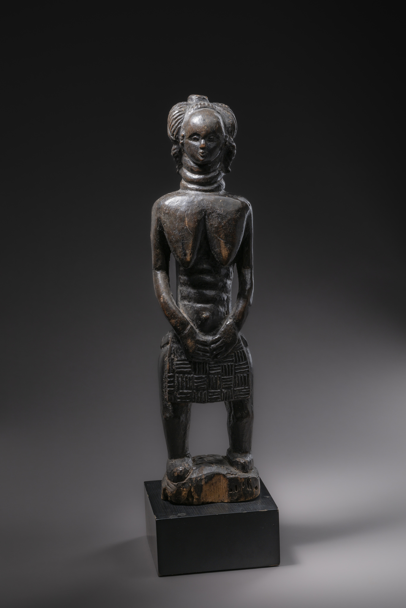 Mende female figures represent ideal beauty in the form of young women who have just been initiated into adulthood. Throughout the Mendeland, they were used for ritual acts by the various secret societies (“sande”, “njayei”, “humoi”, “yassi”).
