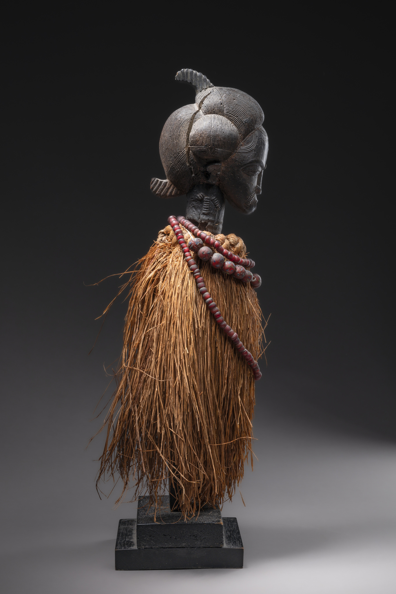 woo, grass fibres, glass beads, insect damage, base