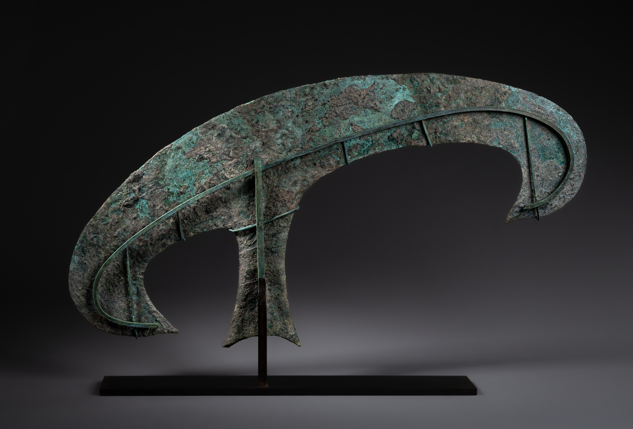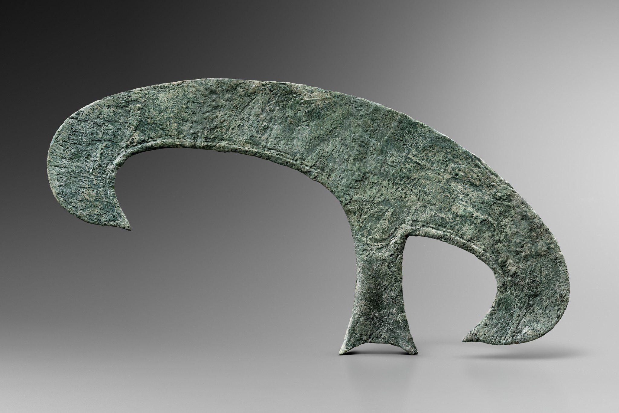 Halberds are known in virtually all Asian Bronze Age cultures. Mostly of smaller, handier size and mounted on wooden or bamboo poles, they served as intimidating and fierce weapons. Occasionally oversized halberds were cast as highly impressive symbols of power.