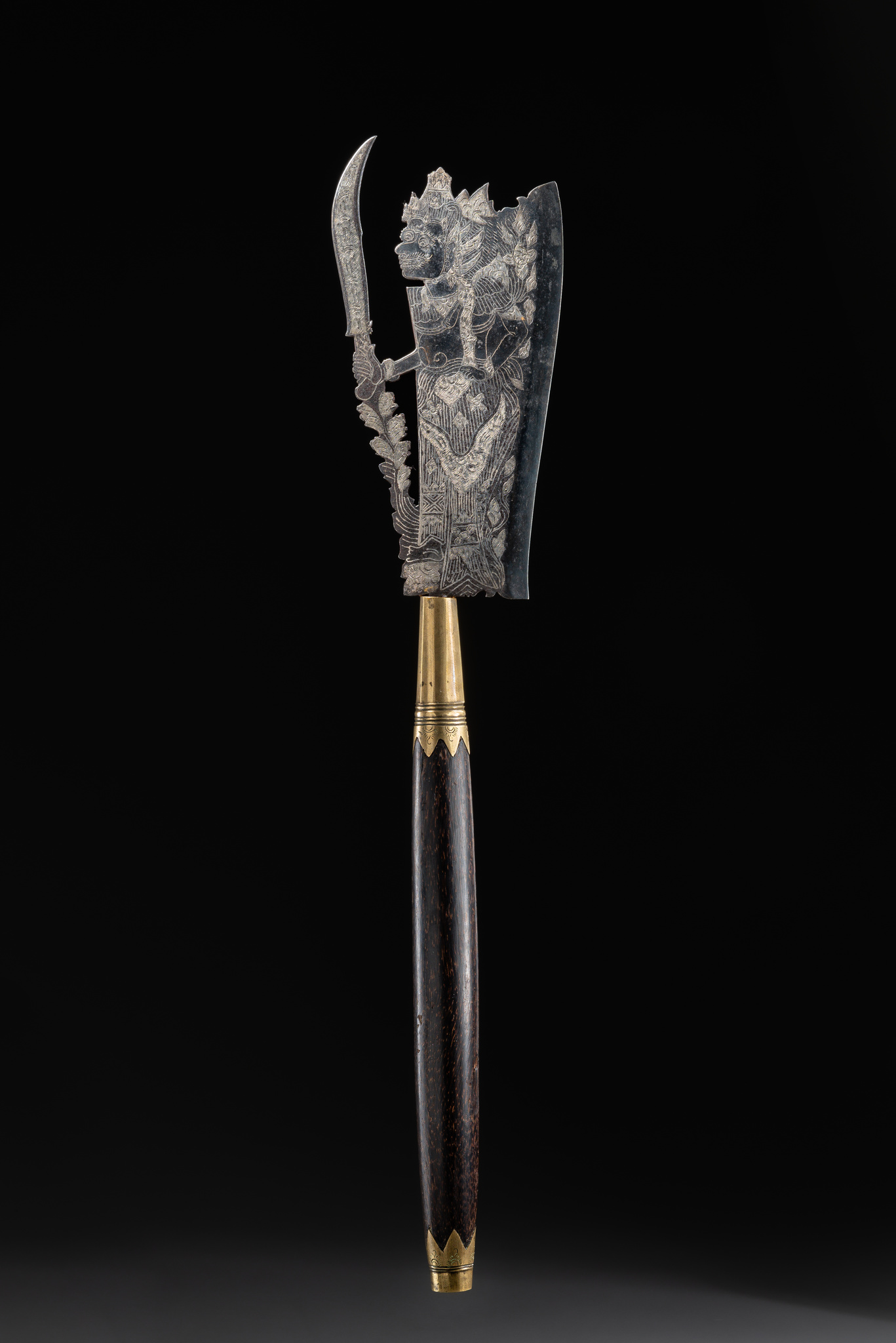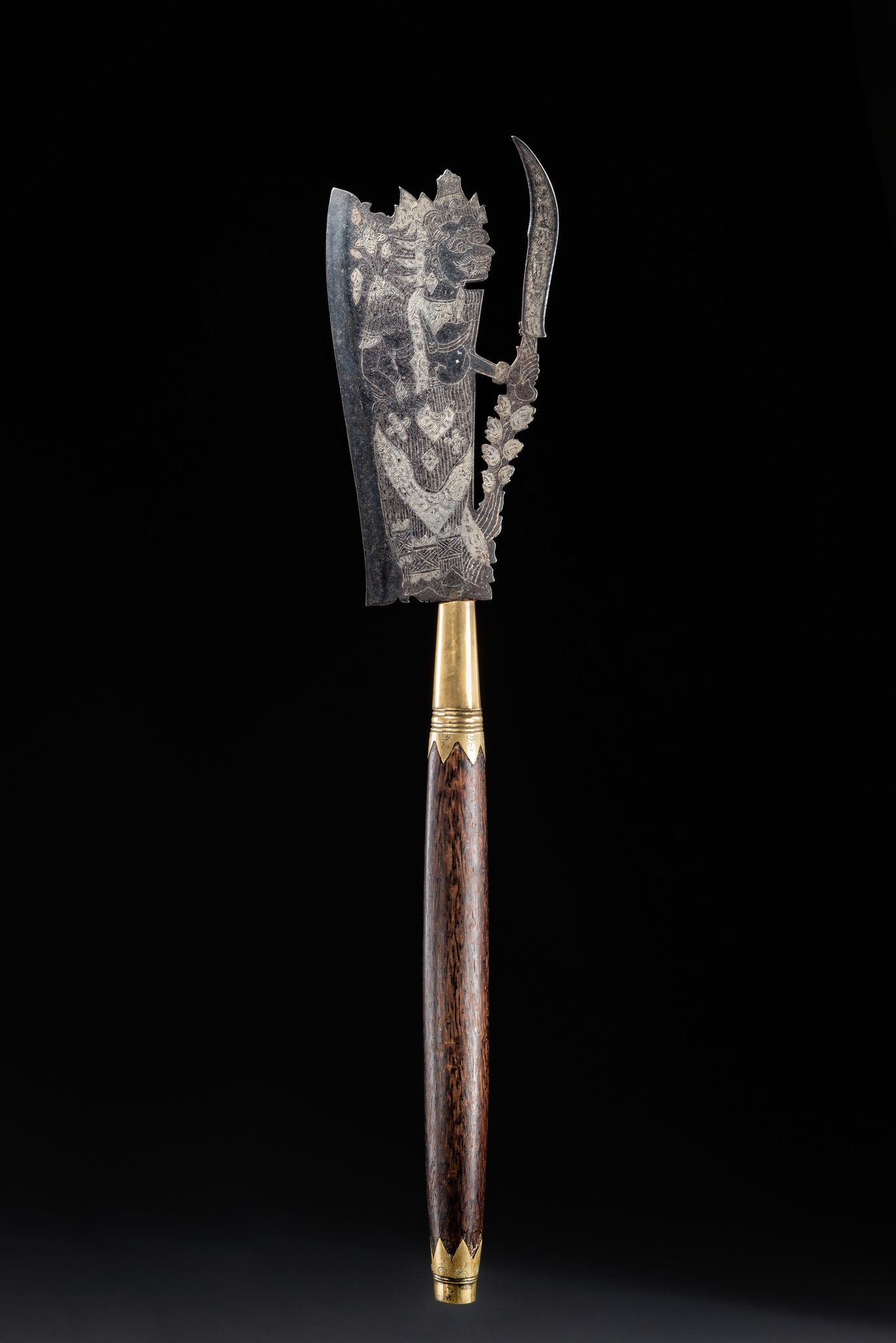 Various type of axes are used on Bali during Hindu rituals and ceremonies. The blade usually has a fanciful shape and encrusted motifs.