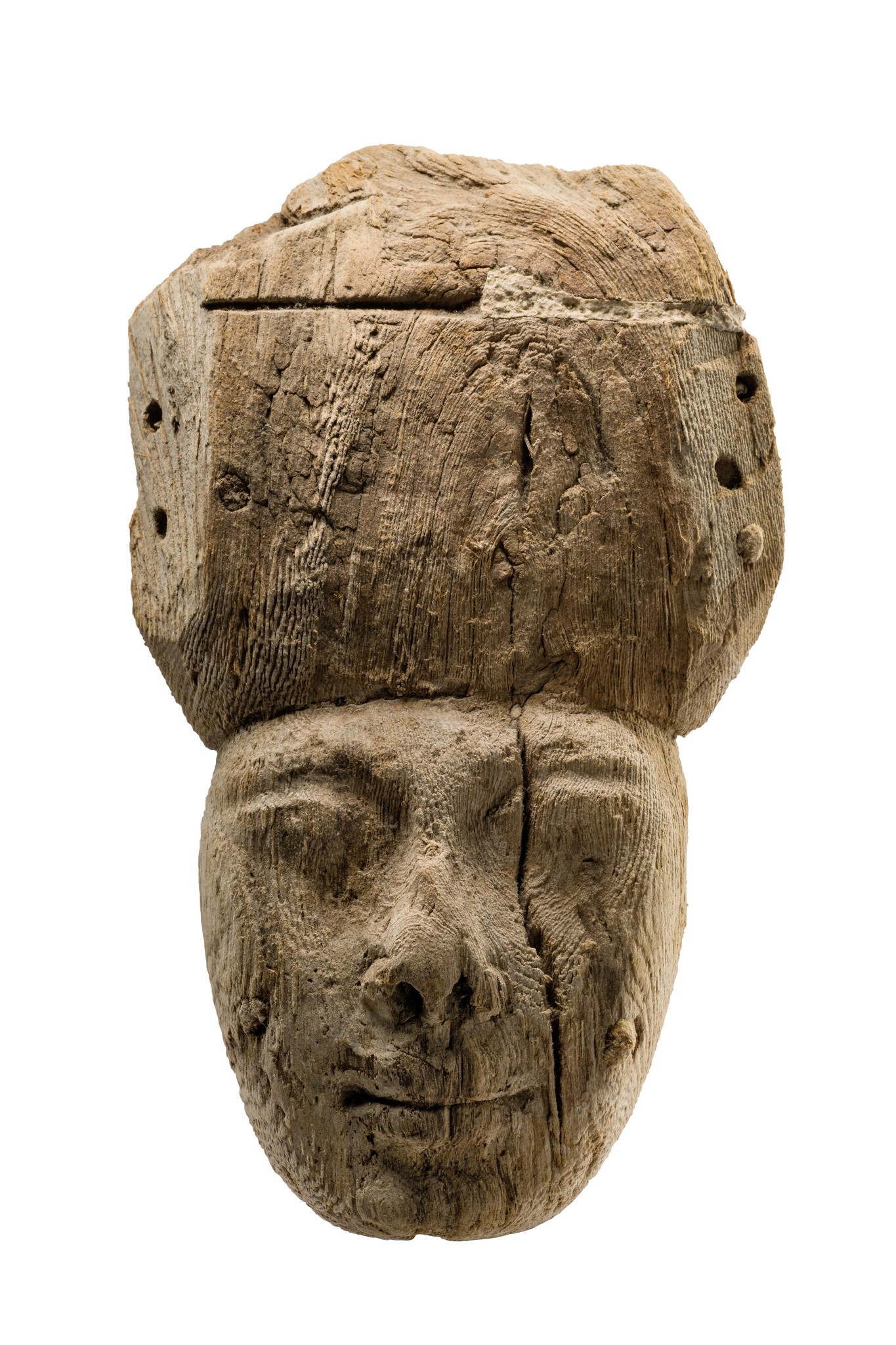The gesso ground and original polychrome painting of the mask have been completely lost. Yet it still impresses with its surprisingly naturalistic facial features of striking beauty."