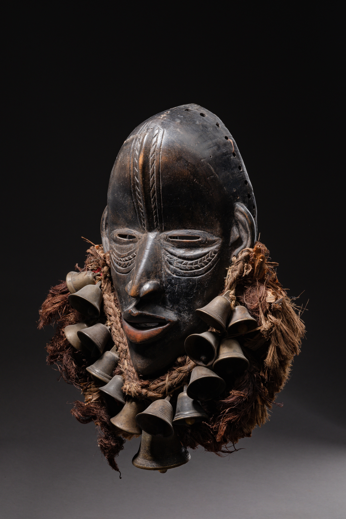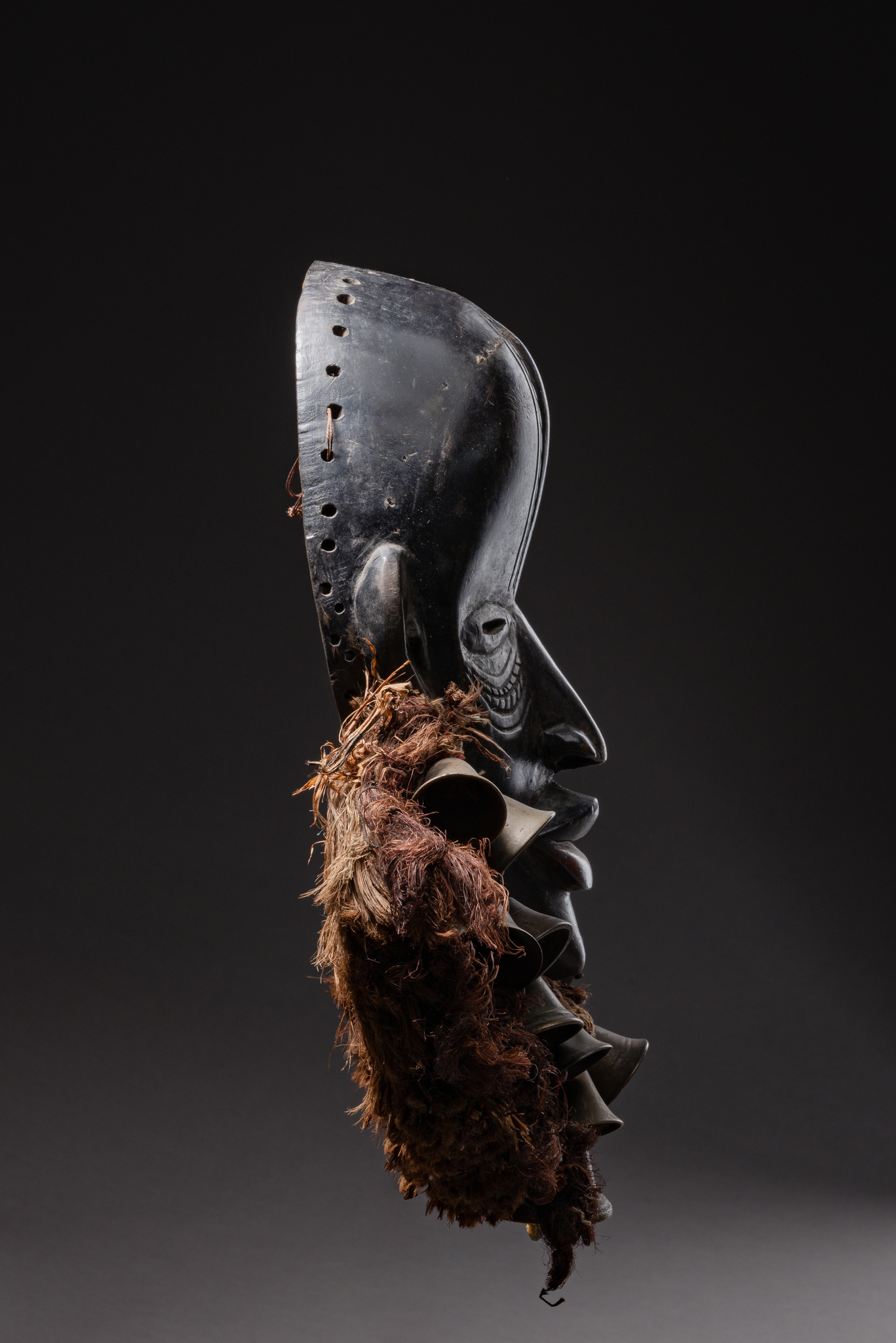 Masque facial anthropomorphe "deangle" avec clochettes en laiton · Côte d'Ivoire, Dan · ID: 3052063