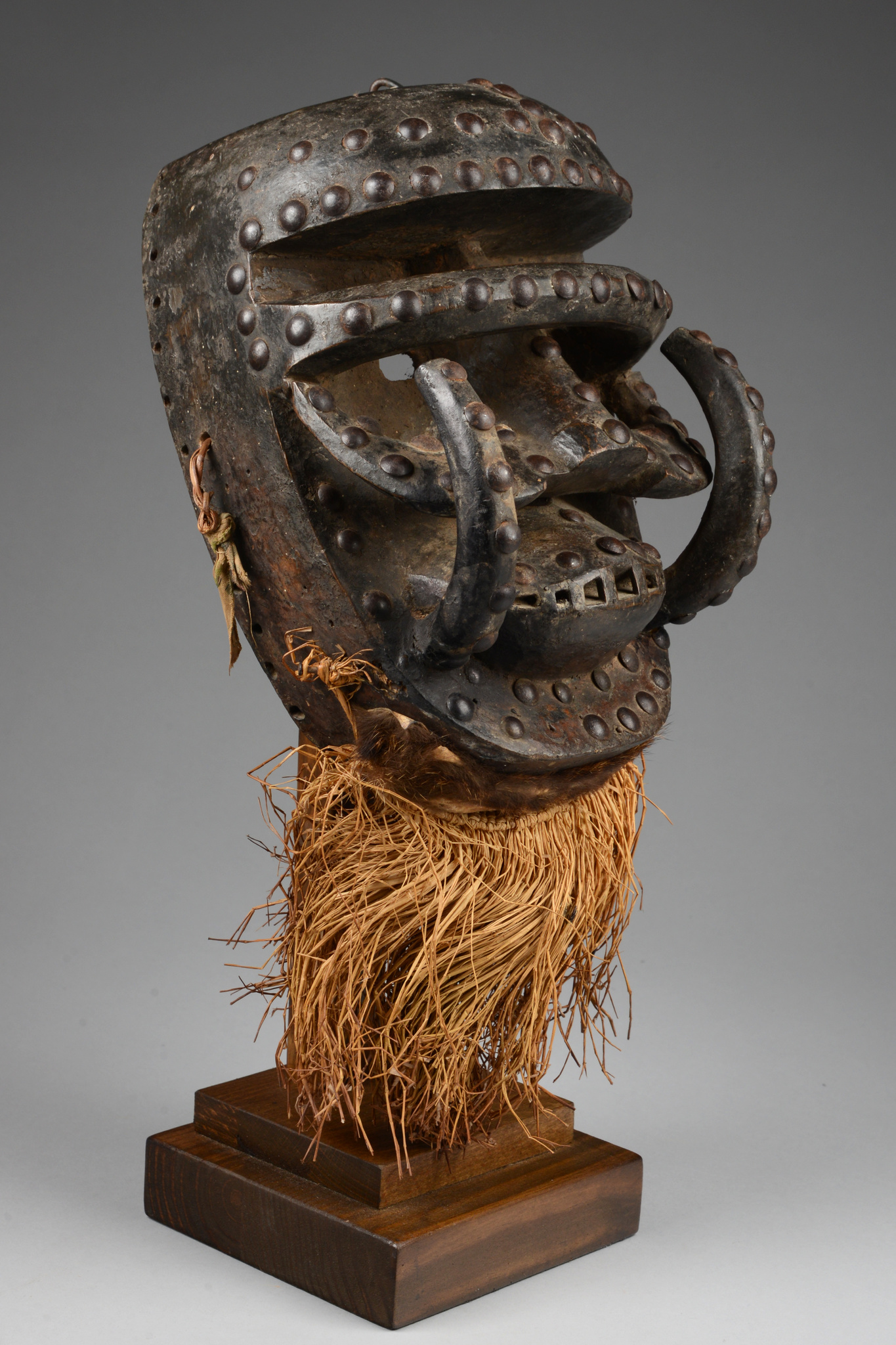 Masks of this type, characterized by bold volumes and projecting forms are believed to embody powerful spiritual forces associated with the forest.