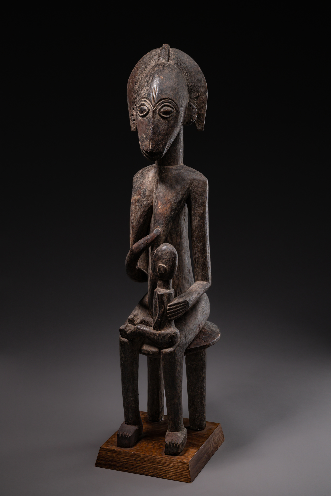 Figures like the present are called “gwan dusu”. They represent the ideal image of a woman. The depiction of mother and child symbolises the fertility of the family and the entire community.