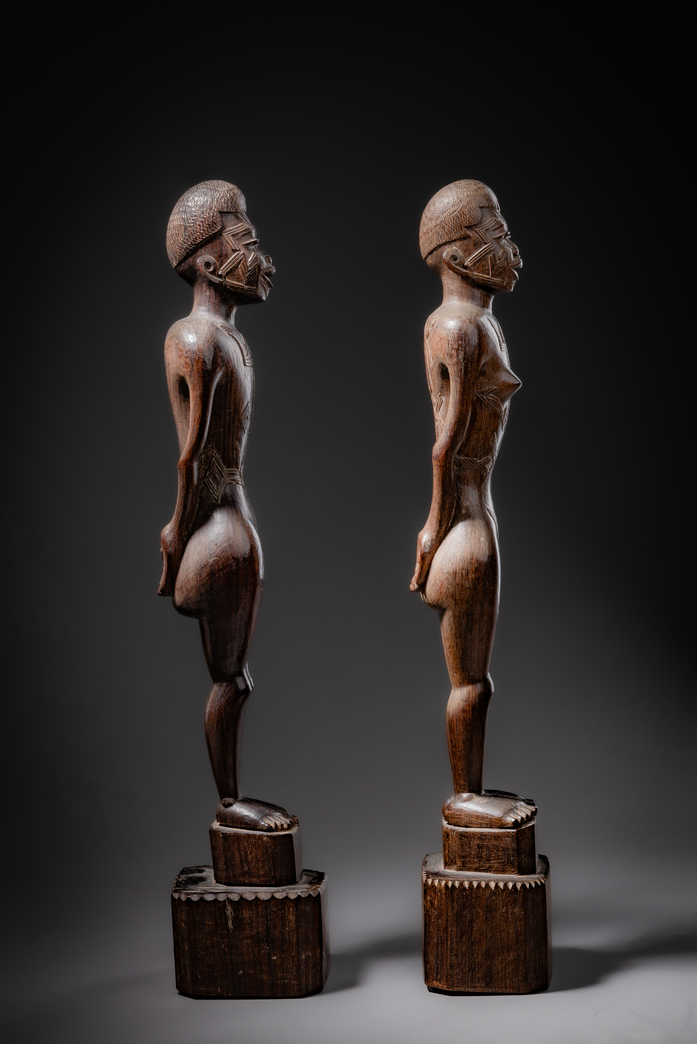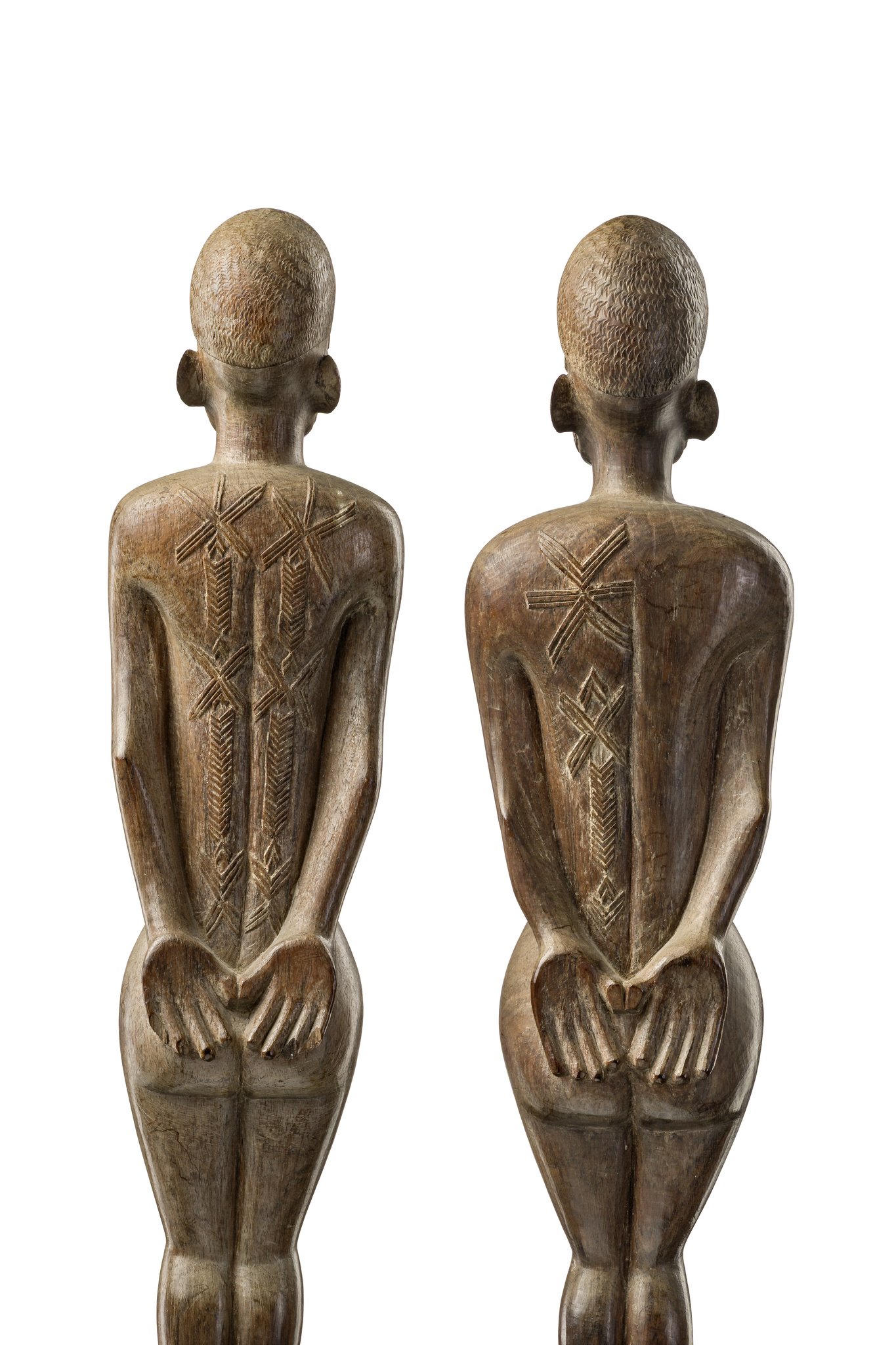 These figures are of outstanding quality. The body forms are nearly identical, and the facial features and scarifications are extremely accurately carved.