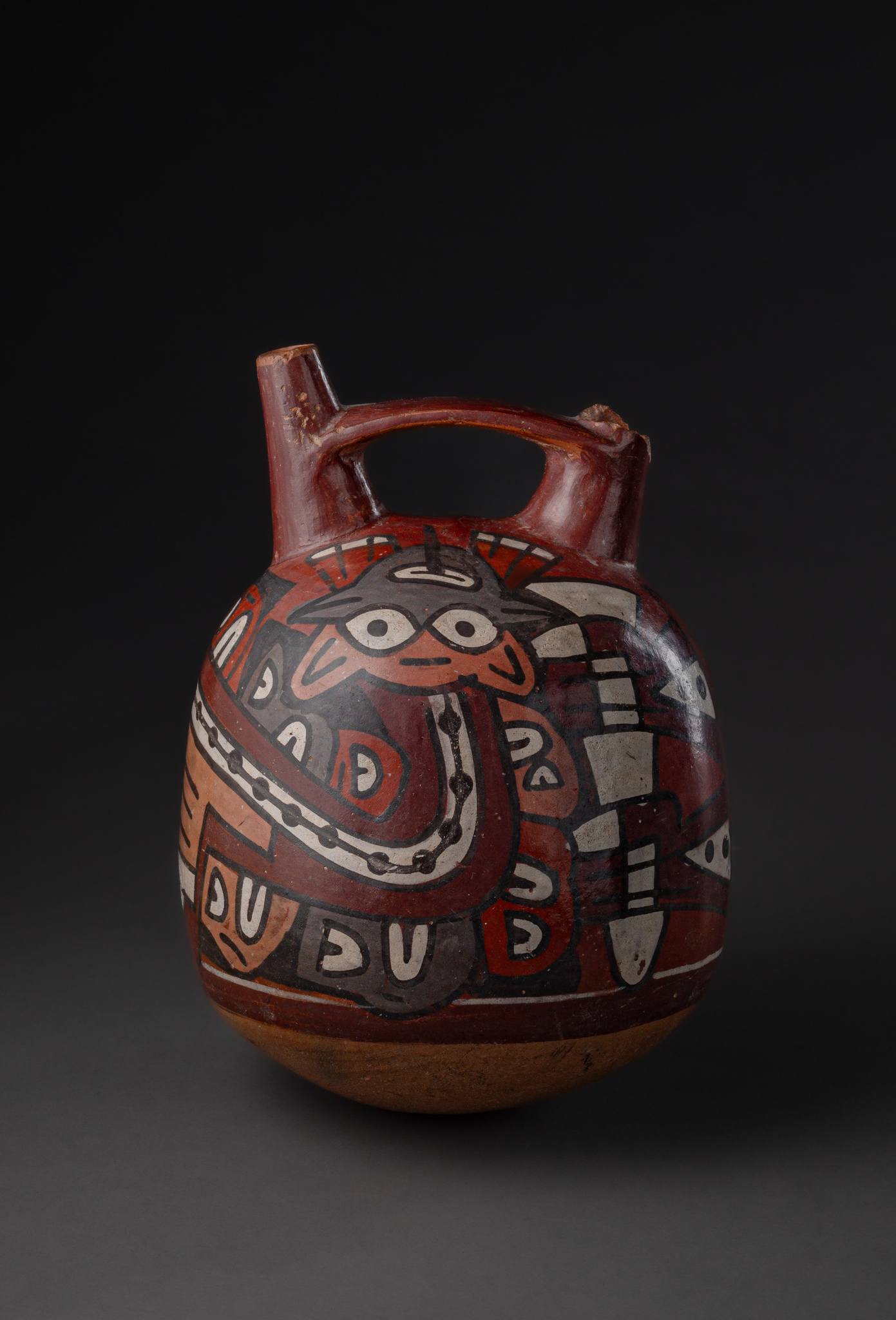 Récipient à double bec verseur avec des êtres mythiques, env. 200 - 600 apr. J.-C · Pérou, Nazca · ID: 3052529
