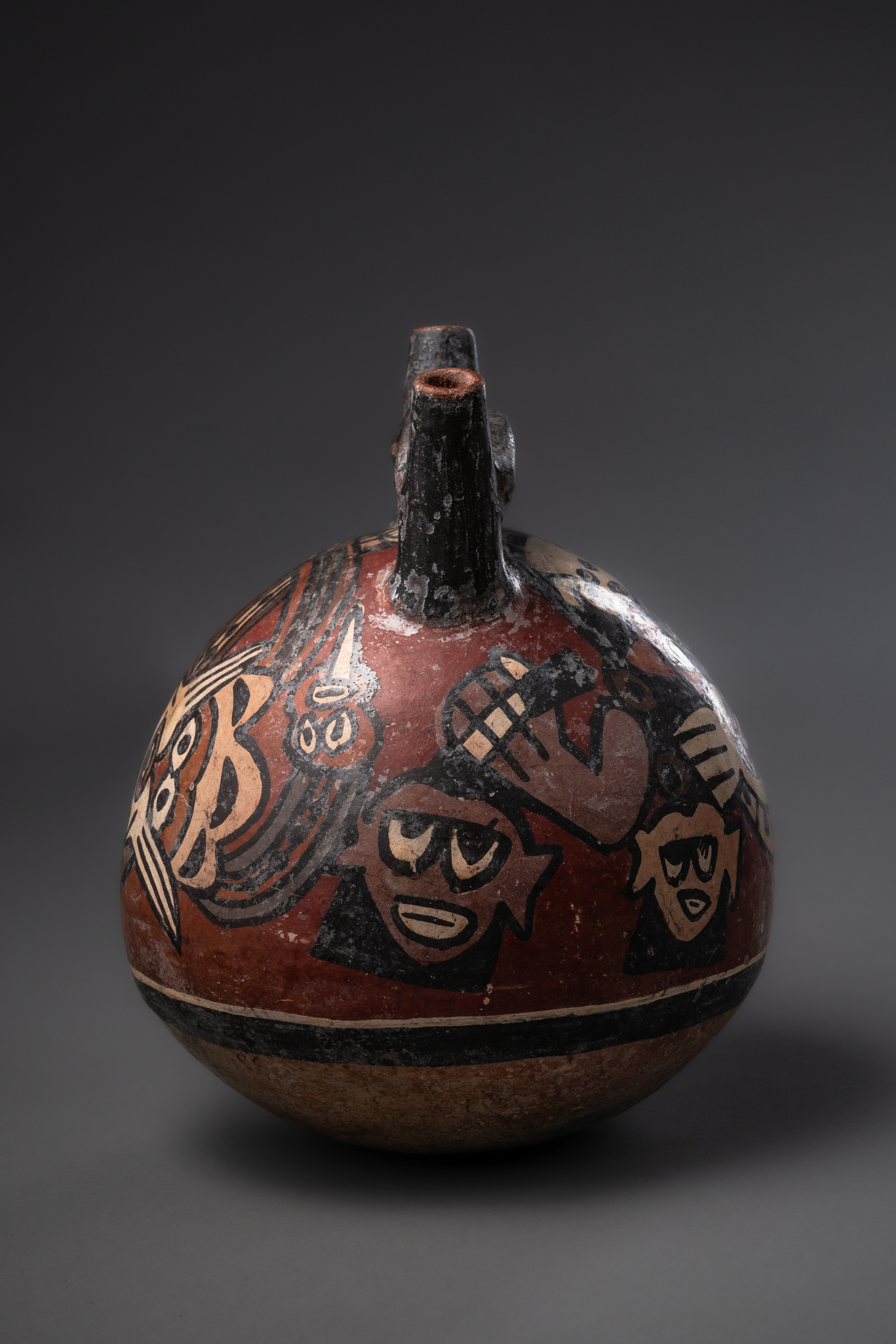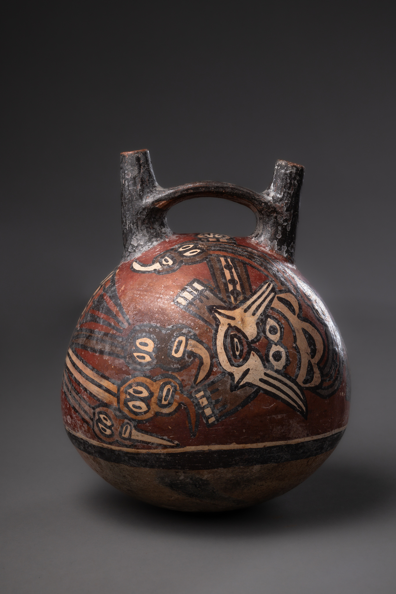 Récipient à double orifice avec démon chat, vers 200 - 600 apr. J.-C. · Pérou, Nazca · ID: 3052527