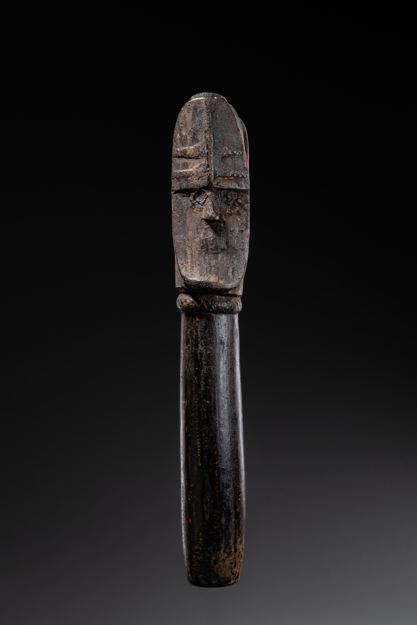 wood, encrusted sacrificial patina, base